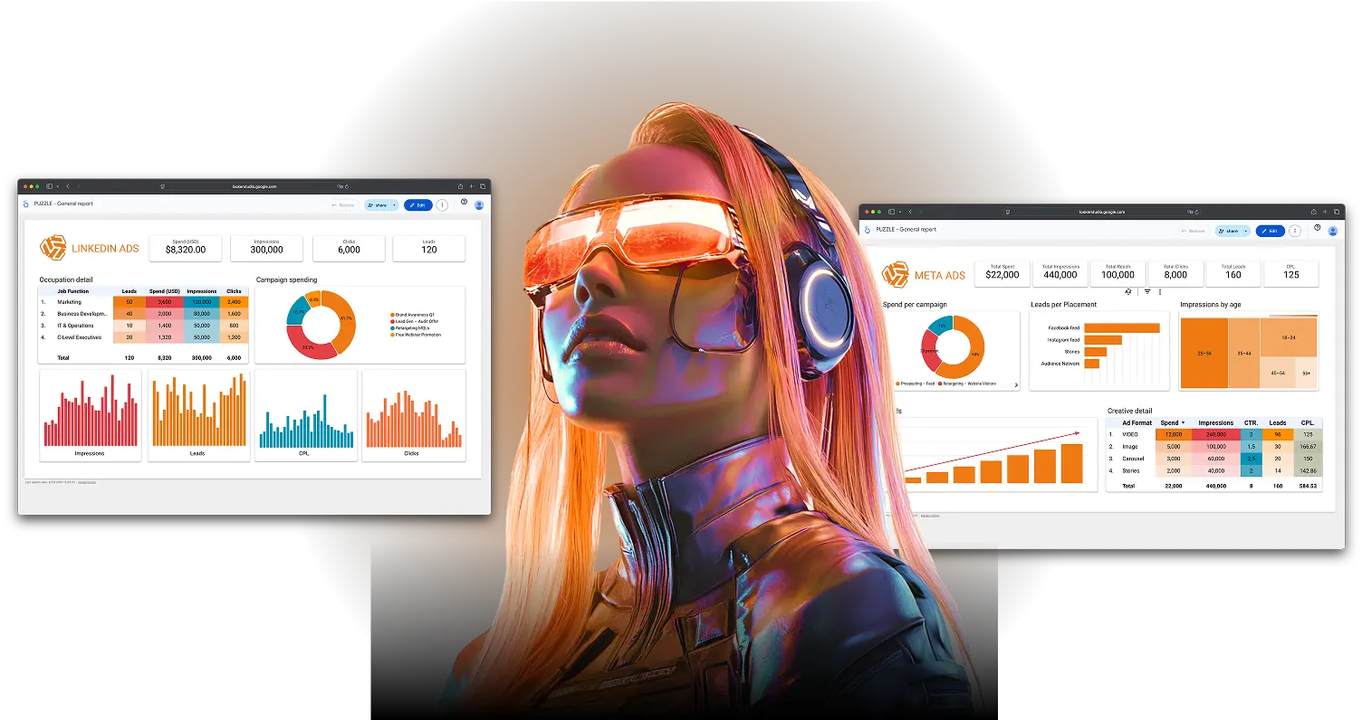 At The Puzzle Marketing, we don’t just build dashboards; we engineer a single source of truth for your entire business. Our marketing KPI dashboards are designed to give you unparalleled clarity and control, transforming raw data into a visual map for your company’s success.